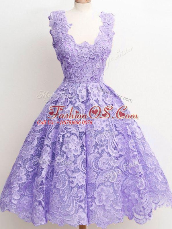 Home >  Bridesmaid Dresses >  Hot Sale Bridsmaid Dresses > Lavender Lace Zipper Bridesmaids Dress Sleeveless Knee Length Lace