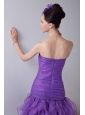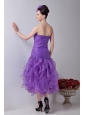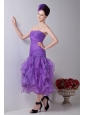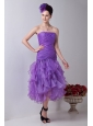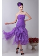Lavender Mermaid Strapless Prom / Homecoming Dress Organza Ruch Tea-length