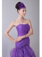 Home >  Prom Dresses >  Discount Prom Dresses > Lavender Mermaid Strapless Prom / Homecoming Dress Organza Ruch Tea-length