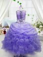 Home >  Special Occasion Dresses >  Mini Quinceanera Dresses > Lavender Organza Zipper Pageant Gowns For Girls Sleeveless Floor Length Beading and Ruffles and Pick Ups