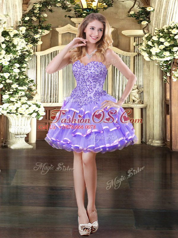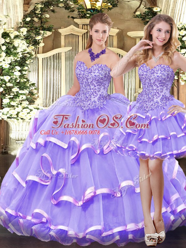 Lavender Organza Zipper Sweet 16 Dress Sleeveless Floor Length Appliques and Ruffled Layers