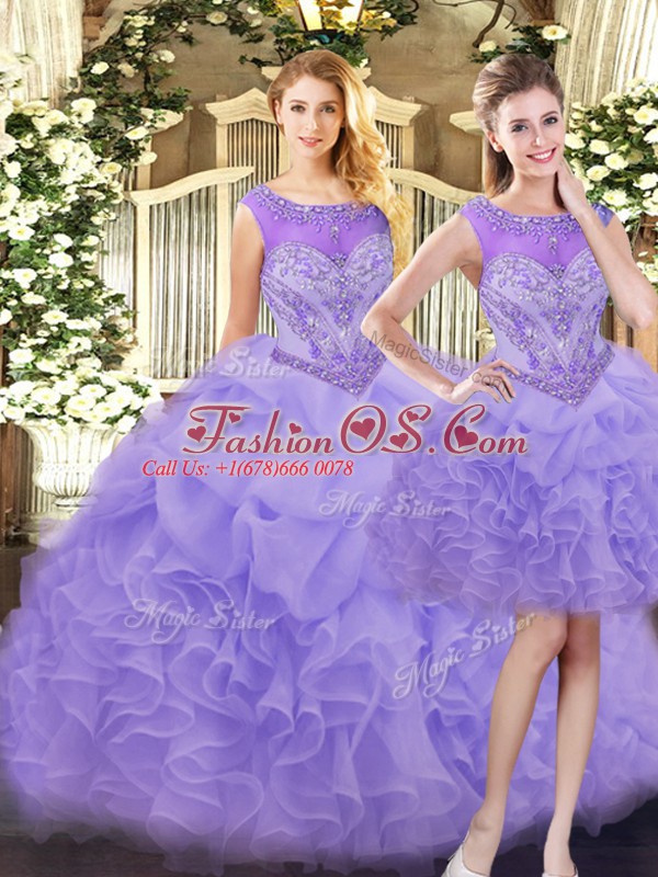 Lavender Scoop Zipper Beading and Ruffles Quinceanera Dresses Sleeveless