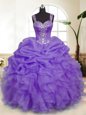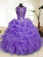 Lavender Sleeveless Beading and Ruffles and Pick Ups Floor Length Sweet 16 Quinceanera Dress