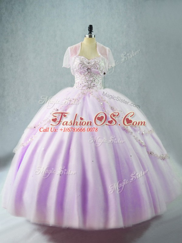 Lavender Sleeveless Beading Floor Length Quinceanera Gown