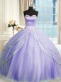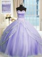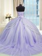 Lavender Sleeveless Court Train Beading and Appliques With Train 15th Birthday Dress