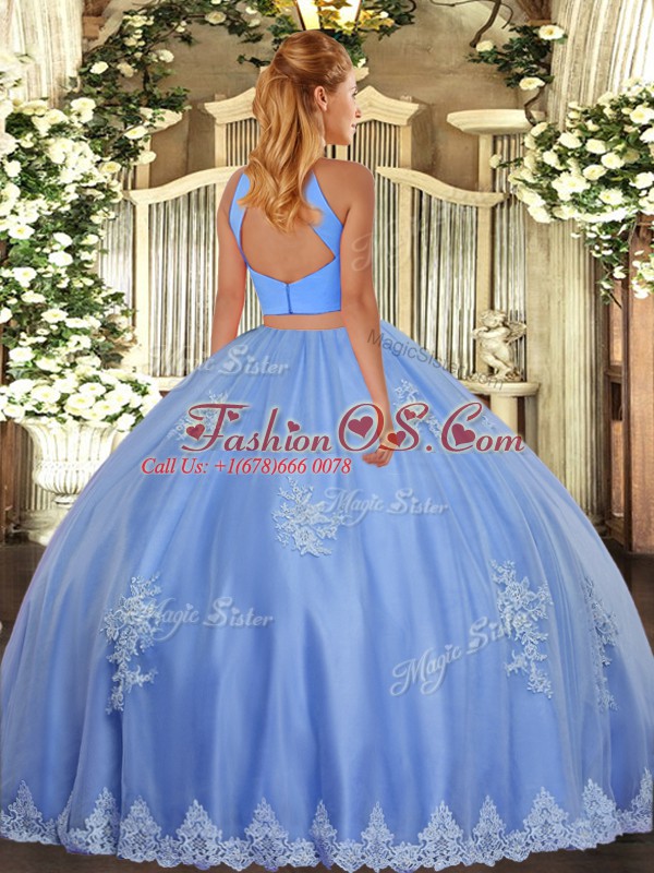 Lavender Sleeveless Floor Length Beading and Appliques Backless Quinceanera Dresses