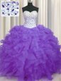 Lavender Sleeveless Floor Length Beading and Ruffles Lace Up Sweet 16 Dress