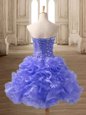 Lavender Sleeveless Mini Length Beading and Ruffles Lace Up Prom Evening Gown