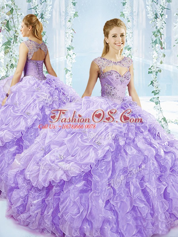 Lavender Sleeveless Organza Brush Train Lace Up Sweet 16 Dresses for Sweet 16 and Quinceanera
