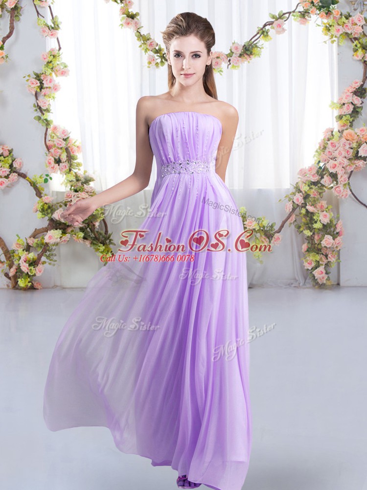 Lavender Sleeveless Sweep Train Beading Quinceanera Dama Dress