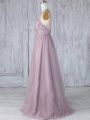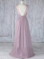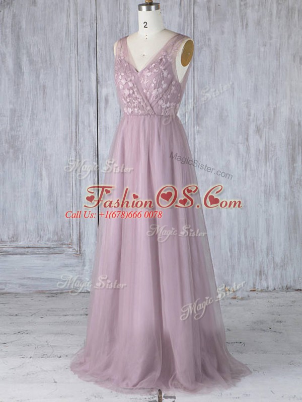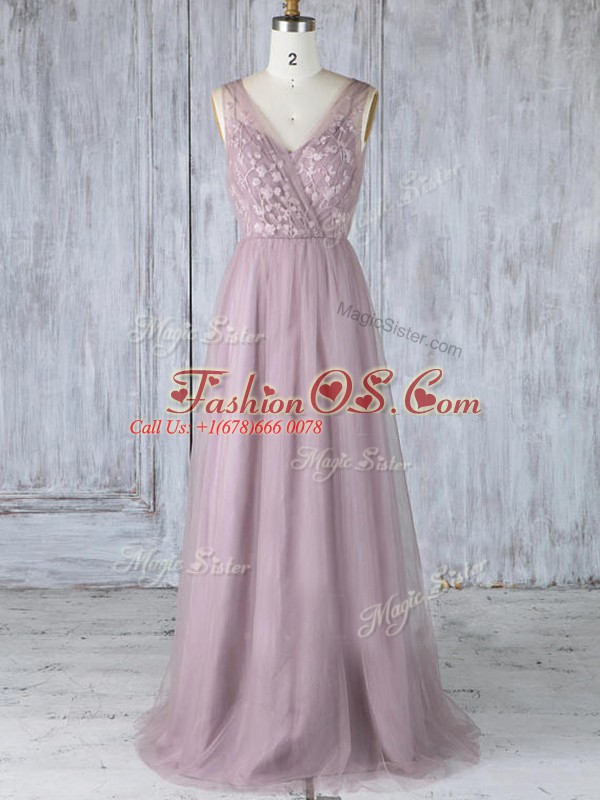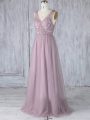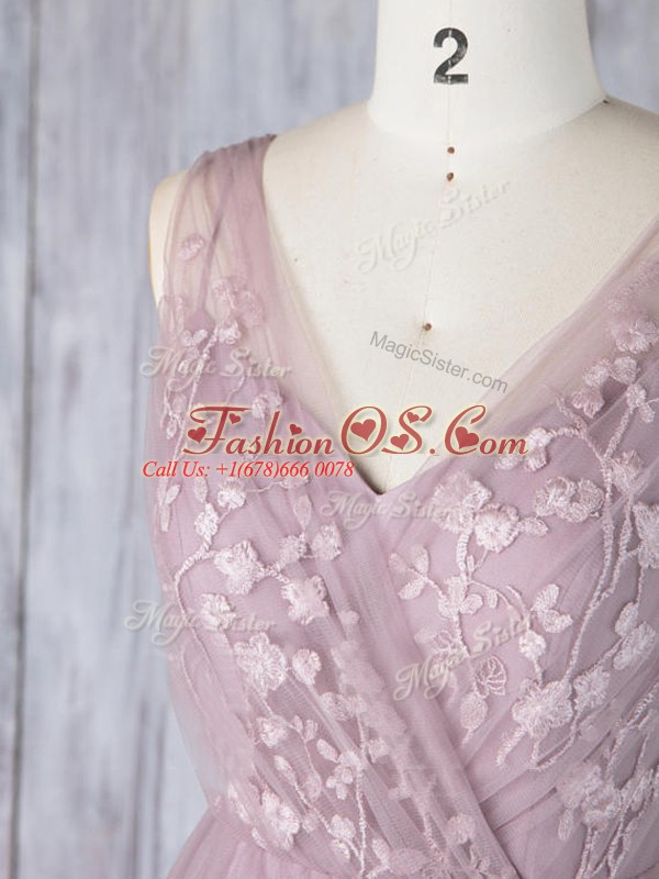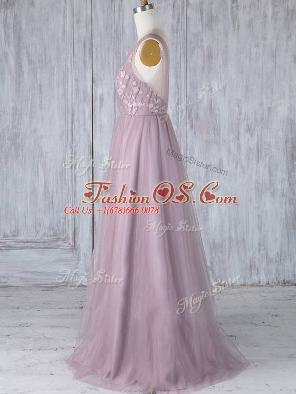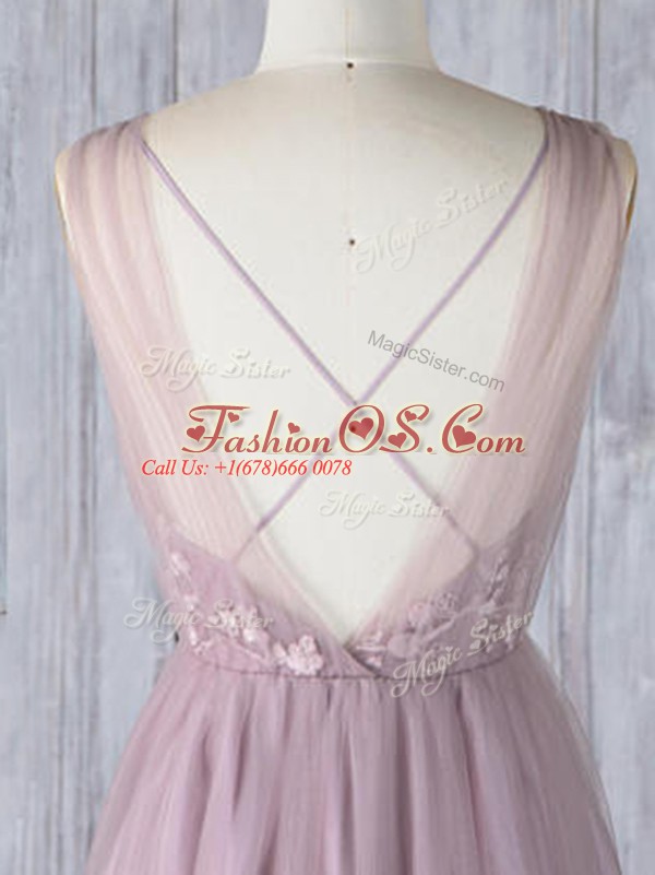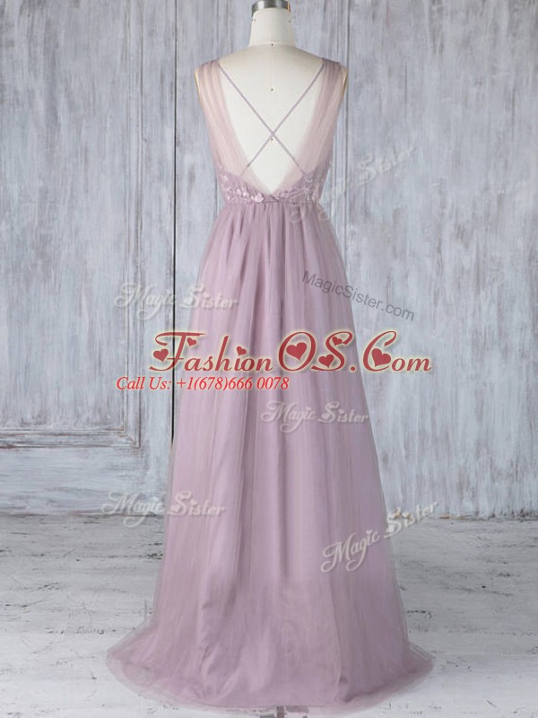 Lavender Sleeveless Tulle Criss Cross Bridesmaid Dress for Prom and Wedding Party