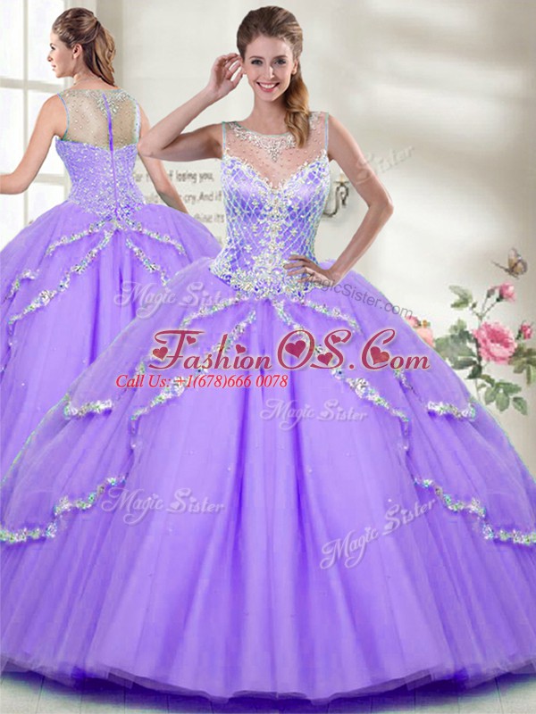 Lavender Sleeveless Tulle Zipper Quince Ball Gowns for Military Ball and Sweet 16 and Quinceanera
