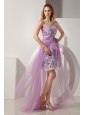 Home >  Prom Dresses >  Best Prom Dresses > Lavender Strapless High-low Taffeta and Tulle Prom Dress with White Appliques