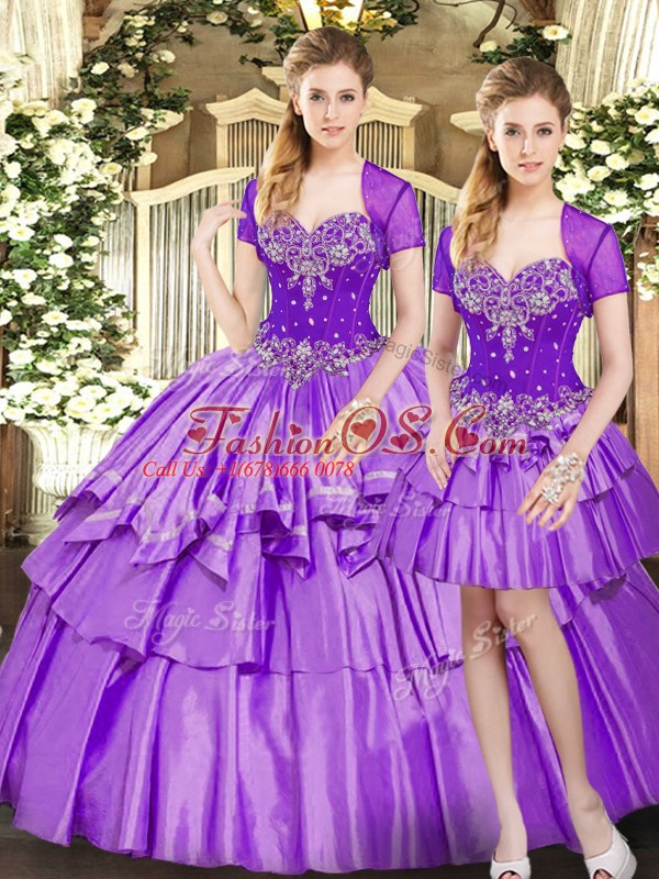Home >  Quinceanera Dresses >  Detachable Quinceanera Skirts > Lavender Sweetheart Neckline Beading and Ruffled Layers Sweet 16 Quinceanera Dress Sleeveless Lace Up