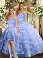 Lavender Sweetheart Neckline Ruffled Layers Quinceanera Gowns Sleeveless Lace Up