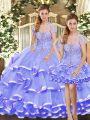 Lavender Three Pieces Beading and Ruffled Layers 15th Birthday Dress Lace Up Organza Sleeveless Floor Length