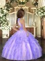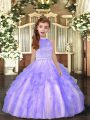 Lavender Tulle Backless High-neck Sleeveless Floor Length Kids Formal Wear Beading and Ruffles