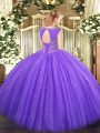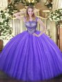 Lavender Tulle Lace Up 15 Quinceanera Dress Sleeveless Floor Length Beading