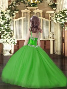 Home >  Special Occasion Dresses >  Lovely Little Girl Pageant Dresses > Lavender Tulle Lace Up Straps Sleeveless Little Girls Pageant Dress Sweep Train Beading