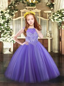 Lavender Tulle Zipper Glitz Pageant Dress Sleeveless Floor Length Beading