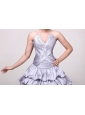 Lavender V-neck Beading and Ruffles Layered Quinceanera Dress