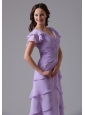 Lavender V-neck Ruffled Layeres Prom Dress With Beading and Ruch In Louisiana