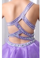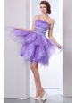 Home >  Prom Dresses >  Short Prom Dresses > Lavevder A-line One Shoulder Short Prom Dress Organza Beading Mini-length