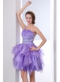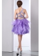 Lavevder A-line One Shoulder Short Prom Dress Organza Beading Mini-length