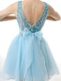 Light Blue A-line Scoop Sleeveless Chiffon Knee Length Zipper Beading and Sashes|ribbons Prom Dresses