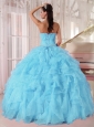 Home >  Quinceanera Dresses >  Popular Quinceanera Dresses > Light Blue Ball Gown Strapless Ruffles Organza Beading Popular Quinceanera Dresses