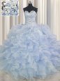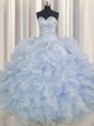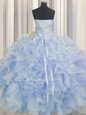 Light Blue Ball Gowns Beading and Ruffles Quince Ball Gowns Lace Up Organza Sleeveless Floor Length