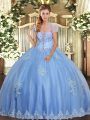 Light Blue Ball Gowns Tulle Strapless Sleeveless Beading and Appliques Floor Length Lace Up 15th Birthday Dress