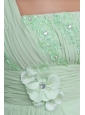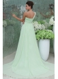 Light Blue Empire One Shoulder Appliques and Ruching Prom Dress