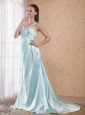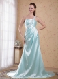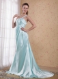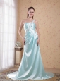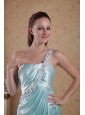 Home >  Prom Dresses >  Cheap Prom Dresses > Light Blue Empire One Shoulder Brush / Sweep Elastic Woven Satin Beading Prom Dress