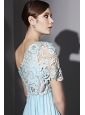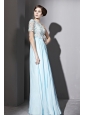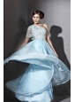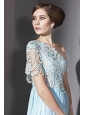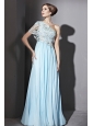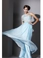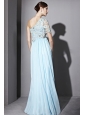 Light Blue Empire One Shoulder Floor-length Chiffon Beading Prom Dress