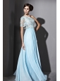 Home >  Prom Dresses >  Discount Prom Dresses > Light Blue Empire One Shoulder Floor-length Chiffon Beading Prom Dress