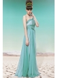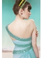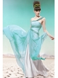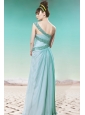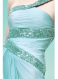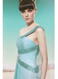 Light Blue Empire One Shoulder Floor-length Chiffon Sequin Prom / Evening Dress