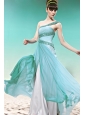 Home >  Prom Dresses >  Discount Prom Dresses > Light Blue Empire One Shoulder Floor-length Chiffon Sequin Prom / Evening Dress