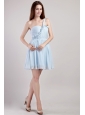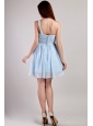 Light Blue Empire One Shoulder Mini-length Chiffon Prom / Homecoming Dress