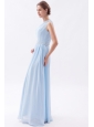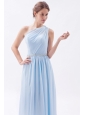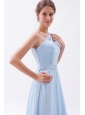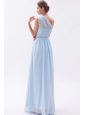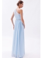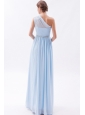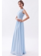 Light Blue Empire One Shoulder Prom Dress Chiffon Beading Floor-length