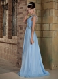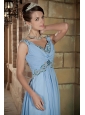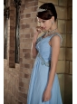 Light Blue Empire V-neck Brush Train Chiffon Beading Prom / Evening Dress