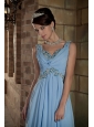 Home >  Prom Dresses >  Cheap Prom Dresses > Light Blue Empire V-neck Brush Train Chiffon Beading Prom / Evening Dress