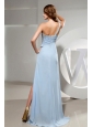 Home >  Prom Dresses >  Best Prom Dresses > Light Blue One Shoulder and High Slit Prom Dress With Beading