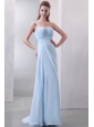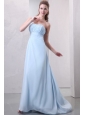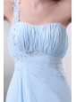 Light Blue One Shoulder Empire Chiffon Prom Dress with Appliques