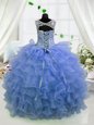 Light Blue Scoop Lace Up Beading and Ruffled Layers Child Pageant Dress Sleeveless