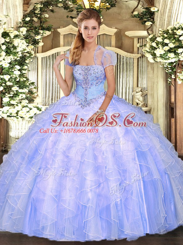 Light Blue Sleeveless Tulle Lace Up Sweet 16 Dresses for Military Ball and Sweet 16 and Quinceanera
