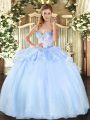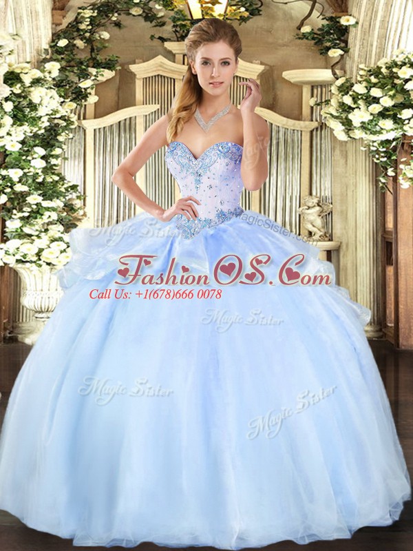 Light Blue Sweetheart Neckline Beading Quince Ball Gowns Sleeveless Lace Up