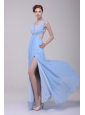 Home >  Prom Dresses >  Fashionable Prom Dresses > Light Blue V-neck Beading and High Silt Prom Dress in Chiffon