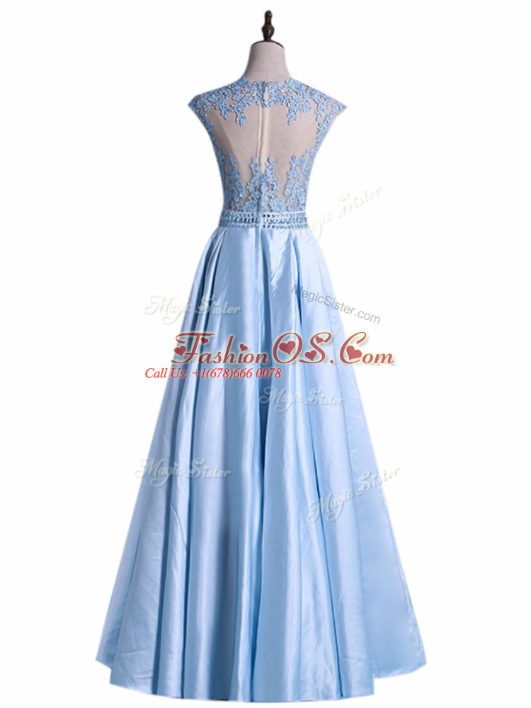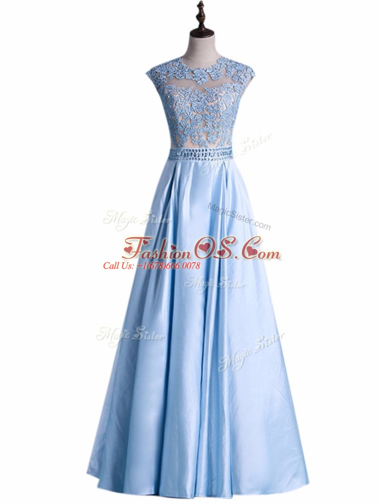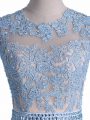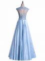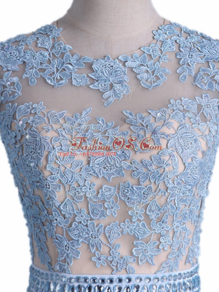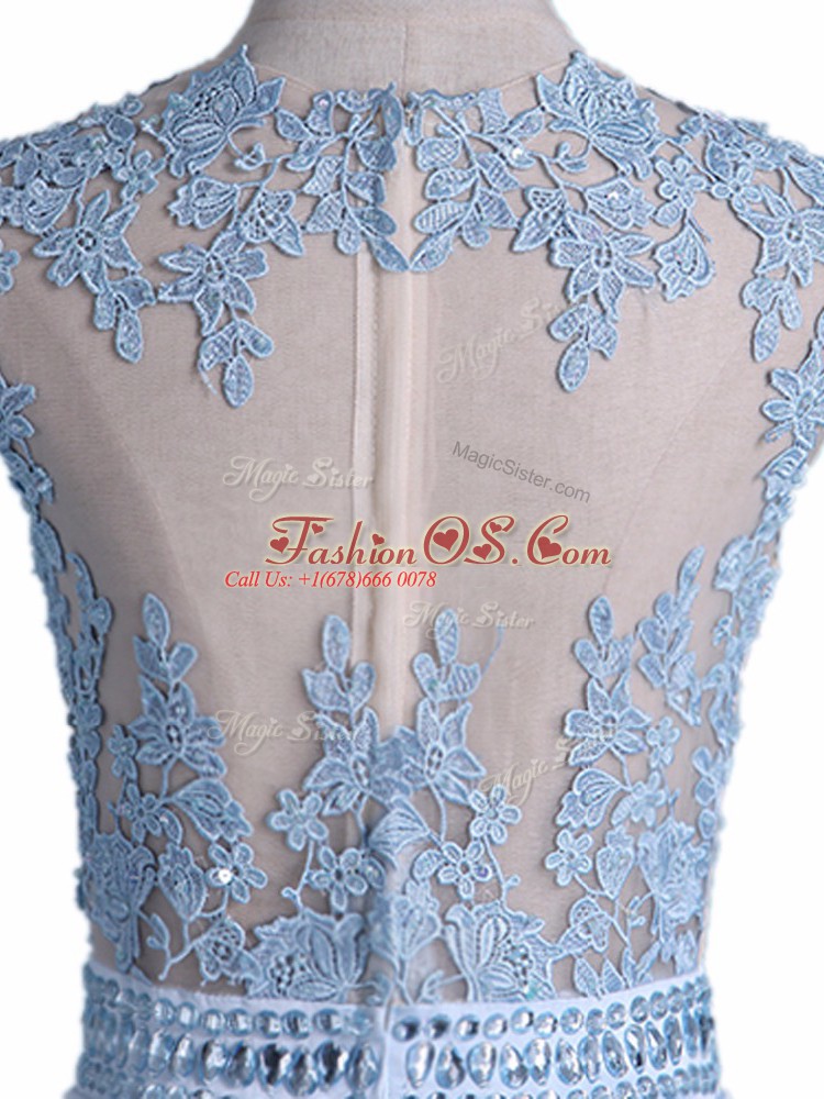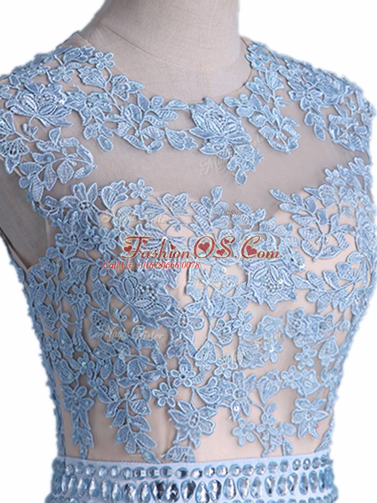 Light Blue Zipper Prom Evening Gown Beading and Lace Sleeveless Floor Length