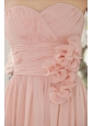 Fashion design with flower decorations on the waistband, this stylish pink dress can be worn on evening or prom. Simple design with ruching on the sweet heart neckline and waist can attract eyesight immediately. The skirt falls in clean, smooth lines to the floor, wrapping your legs in lovely chiffon. Wear it you will be the spotlights no matter where you are.